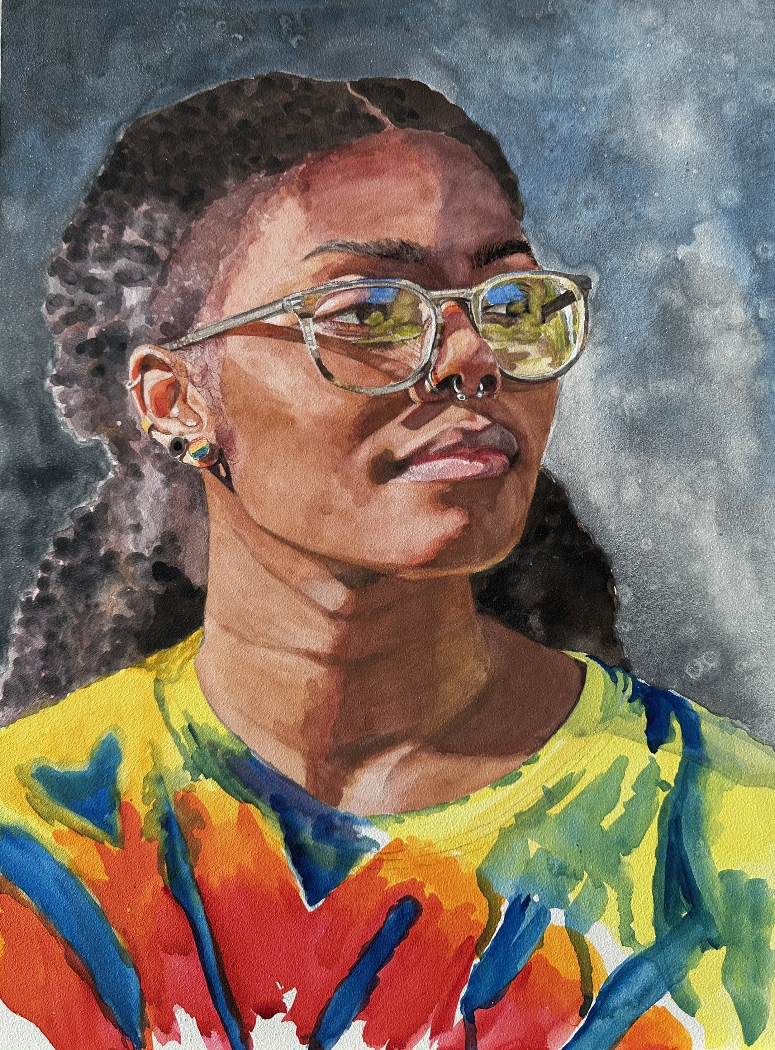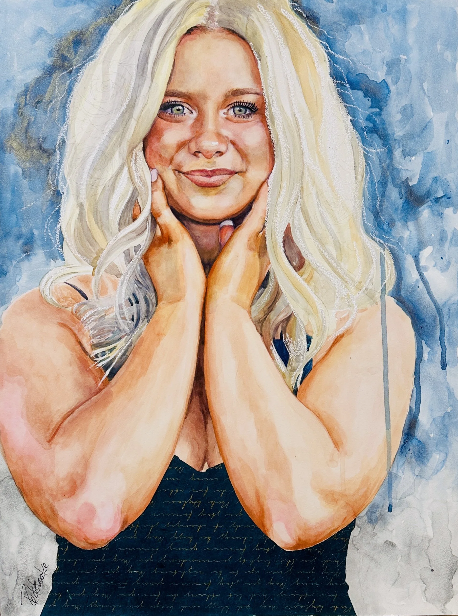 “Kaylie”. Watercolor on Aquabord, 18x24”